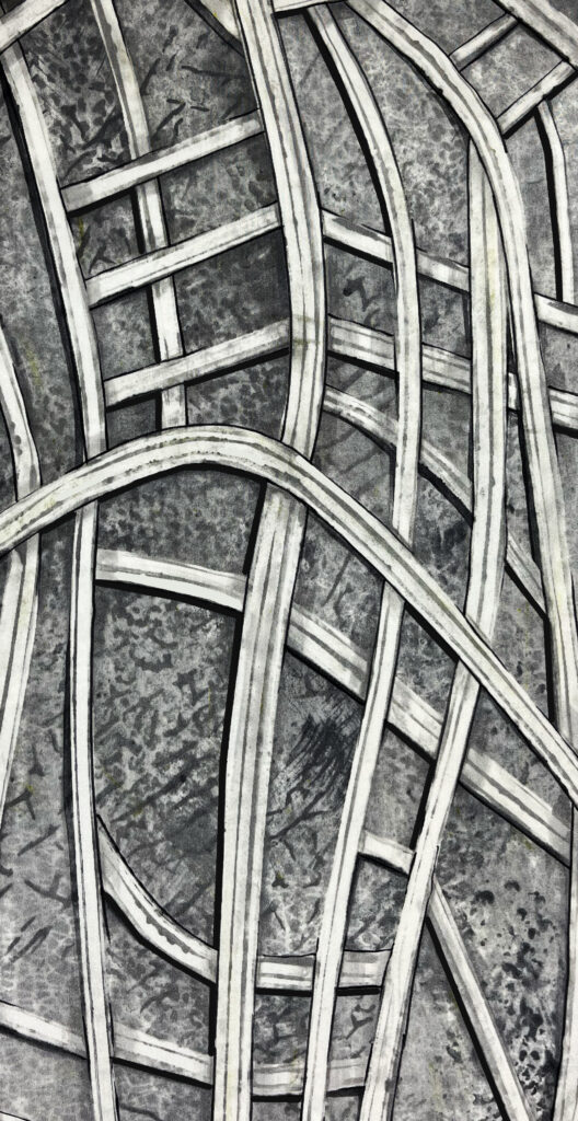 Wax and thickened silk paint on silk